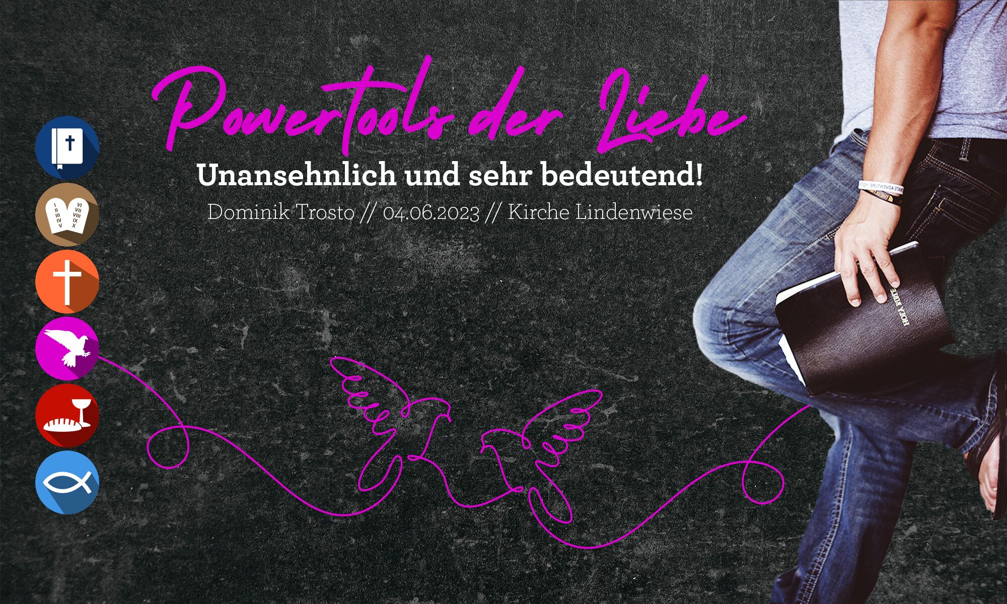 Dominik Trosto möchte gemeinsam mit uns eine heilsame & göttliche Perspektive auf Schwäche & Zerbruch in unserer Mitte entdecken. Er geht der Frage nach, wie die Kraft der Liebe in unserer Gemeinschaft entfesselt werden kann.
